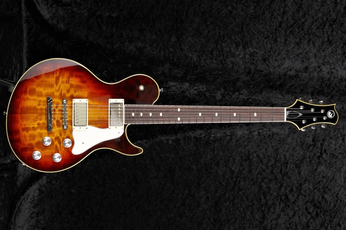 The RRH features an elegant horse chestnut top, combined with a hollow-body construction and side-facing sound holes. It produces the softest and most supple tone of the guitars in this series. Although it is an electric guitar, it produces a beautiful acoustic sound even unplugged.