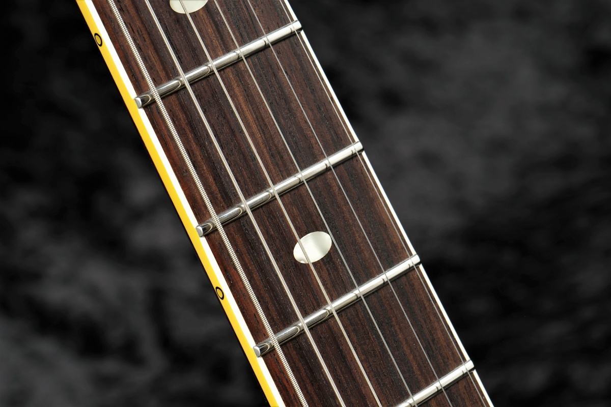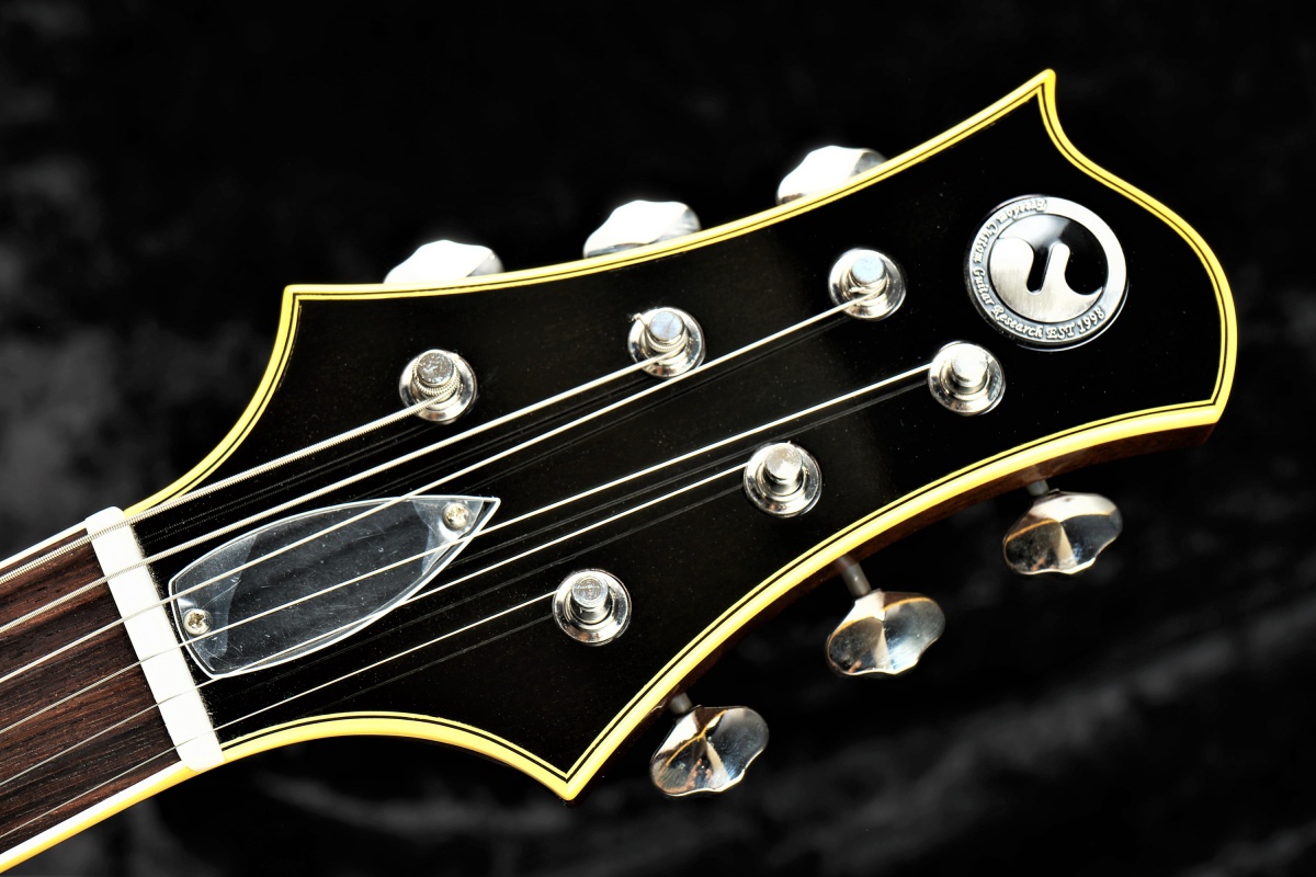 In order to achieve a luscious and rich sounds, we set the neck into the body at a very shallow 1 to 2 degree angle. The thickness of the headstock gently tapers off towards the tip to enhance the tone of the guitar.