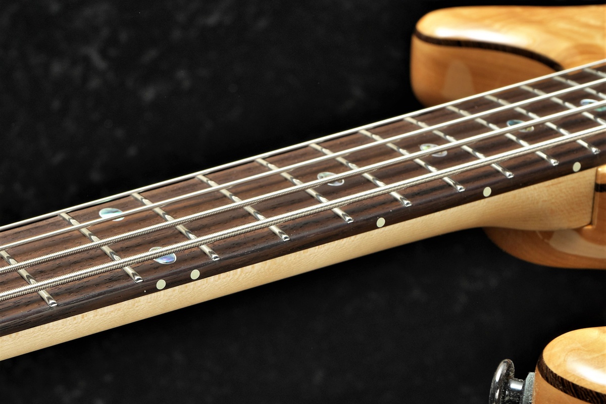 DulakeとDulake Liberoの中間に位置するモデル。フラットボディ。バンドサウンドの中で絶対的なベースの存在感を生み出す、適度に倍音を含みつつもタイトでファットなローエンドと、アタックに対するスピーディーな「音の立ち」はシリーズの中でも随一。 テクニカルでもメロウでもプレイヤーが生み出すそのノートの存在感はいかなる環境下でも埋もれることはありません。ボディにはフィギュアドメイプルをトップ材に使用し、バックはアルダーもしくはアッシュから選択可能。ボディトップとバックの間にはウェンジをラミネートしており、豊かなサスティーンとミッドローを生み出します。指板材はローズウッドもしくはメイプルから選択可能。