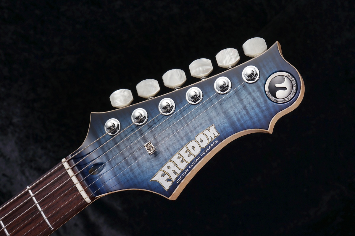 伸びやかなミッド・ハイをもつサウンドを生み出すべく、フィギュアドメイプルトップにボディバックにはアルダー材を採用。