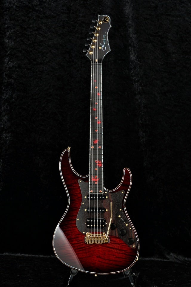 ボディトップ材はフィギュアドメイプル、バック材はアルダーを基本とするモデルです。