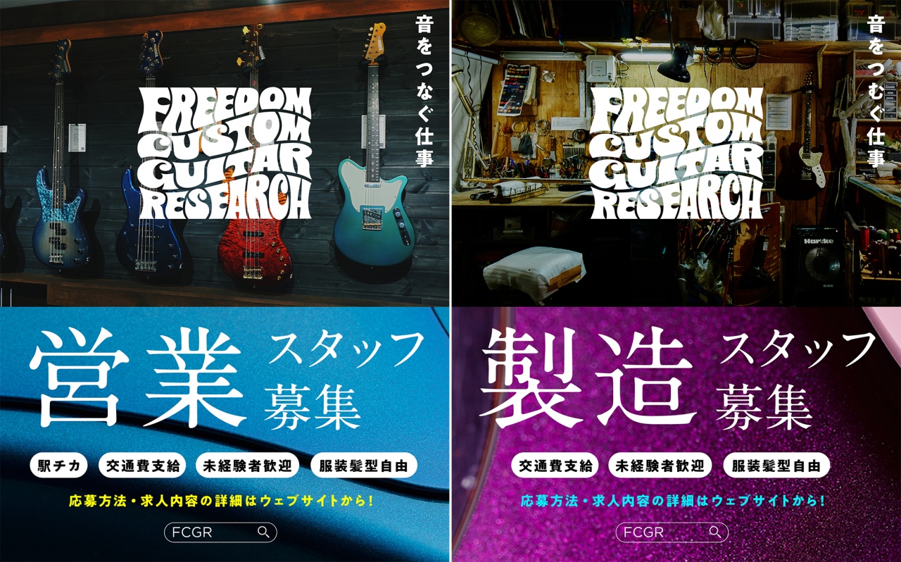 F.C.G.R.のエレキギター&ベースや、取り扱いブランド商品、物販商品の営業・販売・管理に関わるお仕事をはじめ、ウェブサイトやSNSでの情報発信や、リペアー受付業務、Shop & Show Room 「Universal Space」の管理・運営などが主なお仕事内容です♪